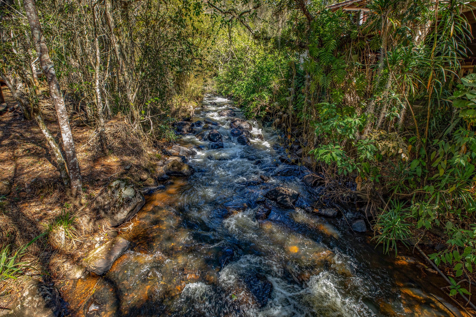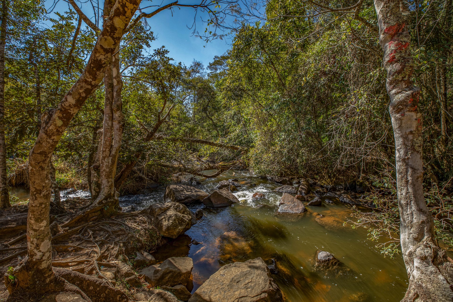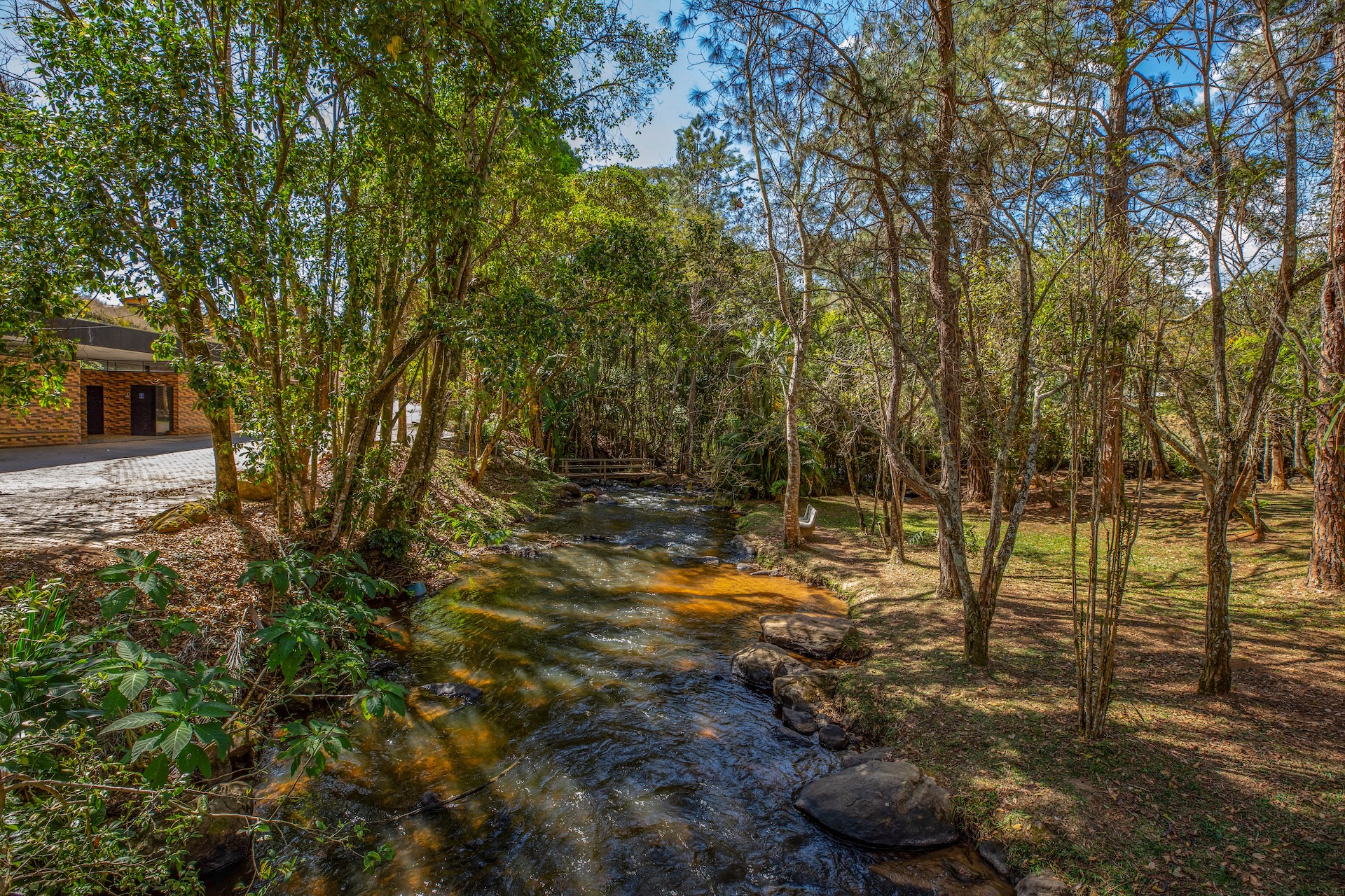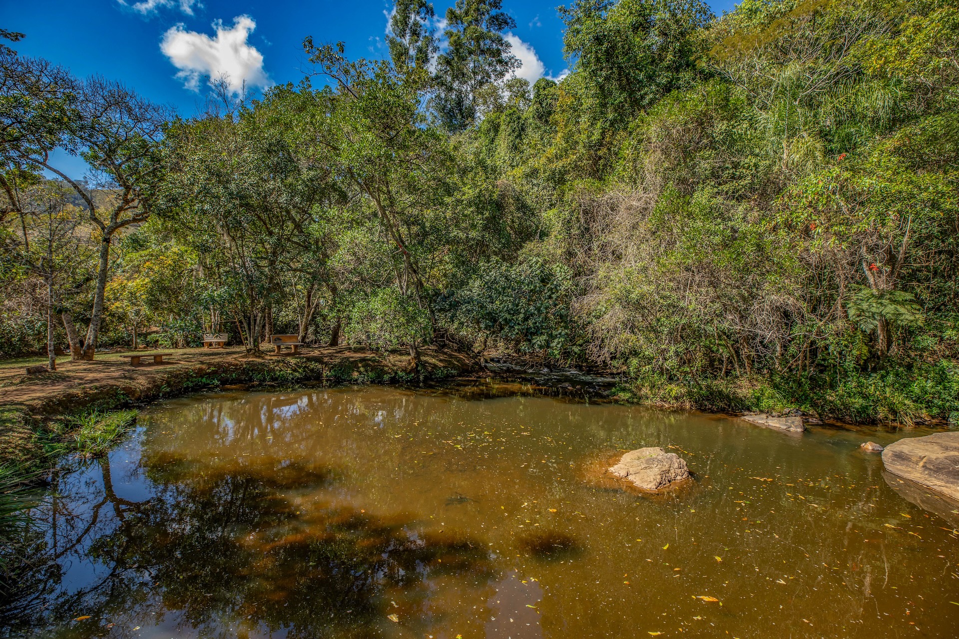 A 154-meter-high waterfall located in an Environmental Protection Area [Área de Proteção Ambiental – APA]. Access is provided by a boardwalk with handrails surrounded by vegetation.