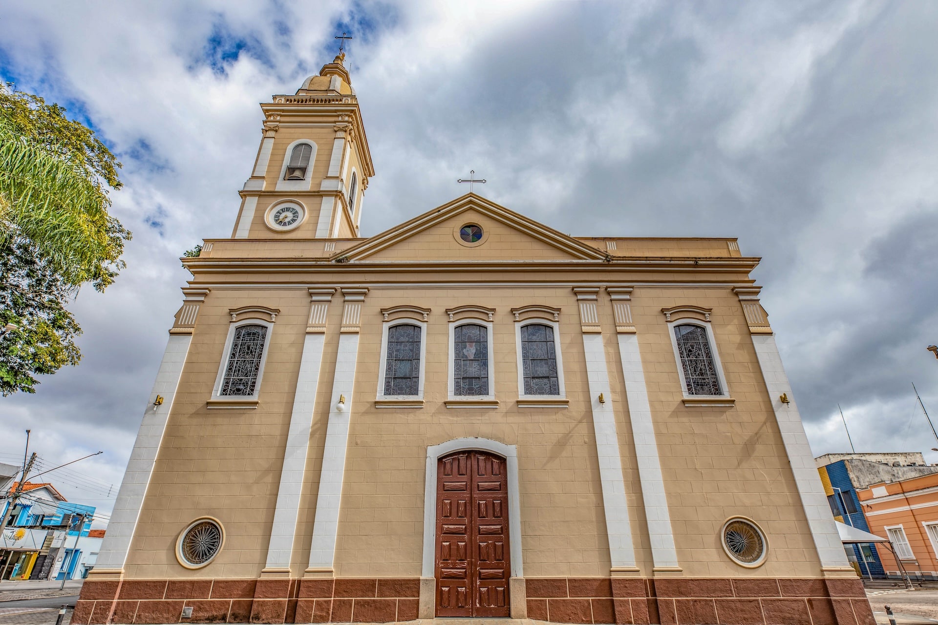 Founded in 1665, the church preserves a few baroque elements (i.e., the main altar, the religious sculptures, and a mural painted by Benedito Calixto in 1911). Its interior is spacious, with a high ceiling and a central chandelier.