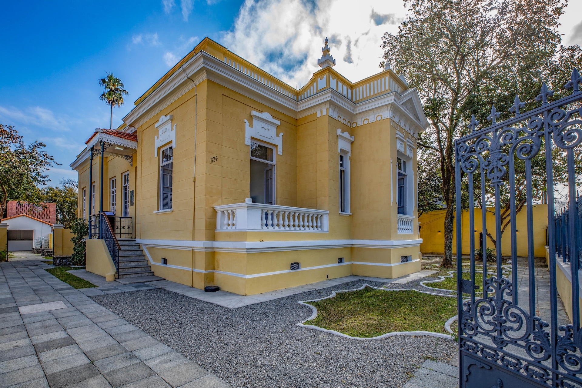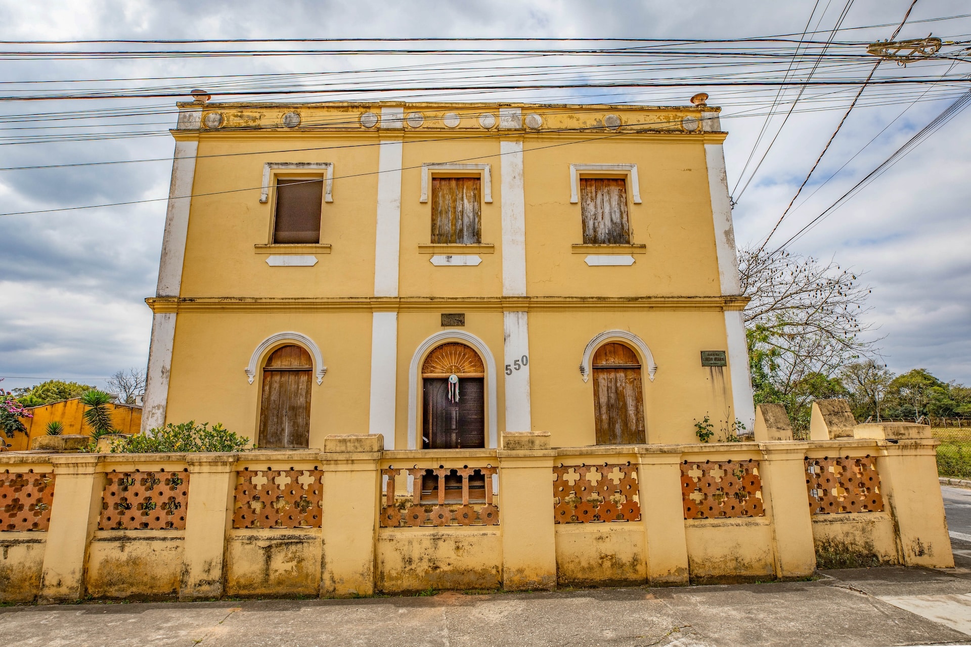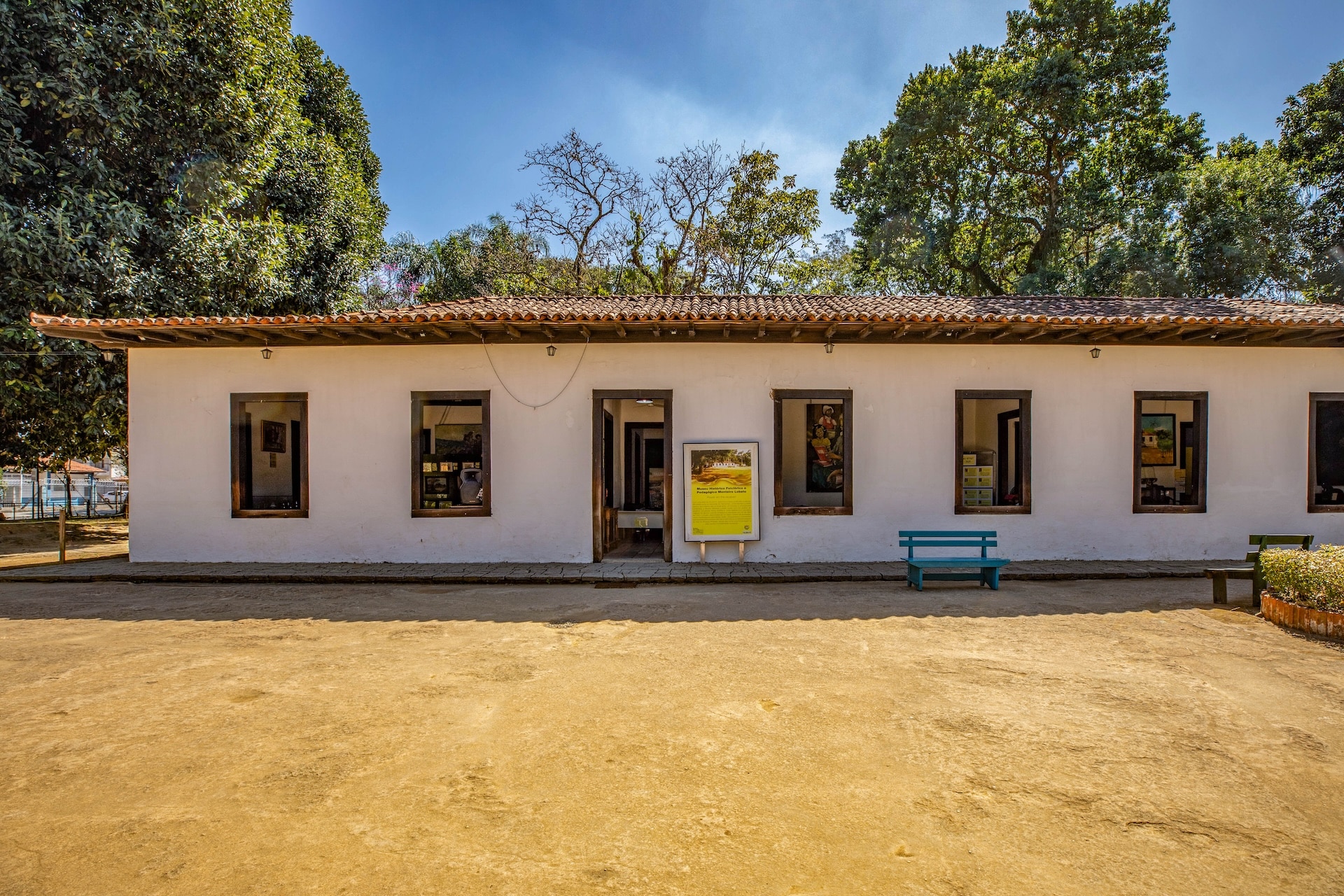 A fine example of 19th-century colonial Paulista architecture, the Espaço Cultural Casa da Mariazinha is a notable landmark with its gabled, ceramic-tile roof, vibrant façade painted in shades of yellow, white, and blue, and stately entrance adorned with bird sculptures, hand carved from wood.