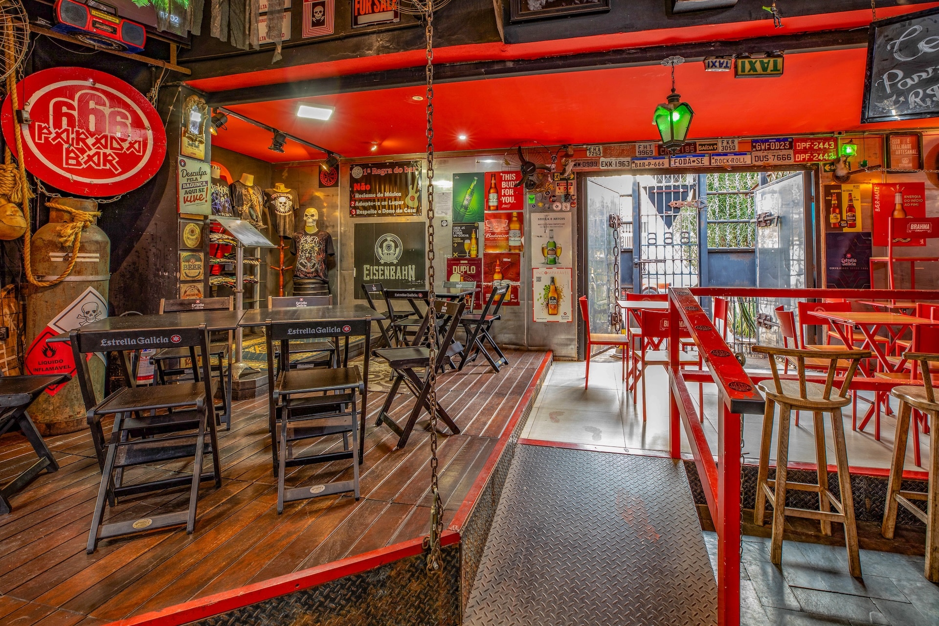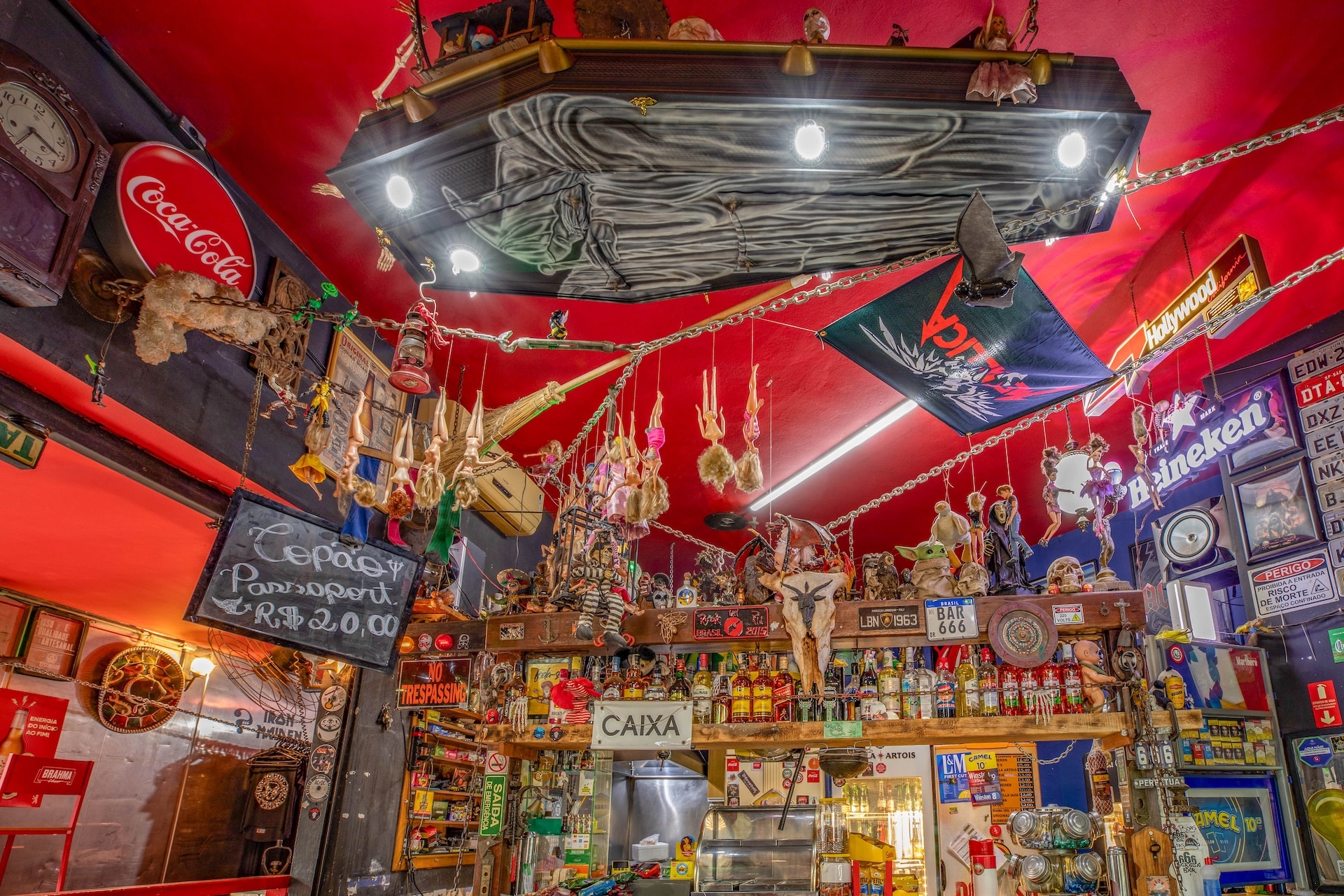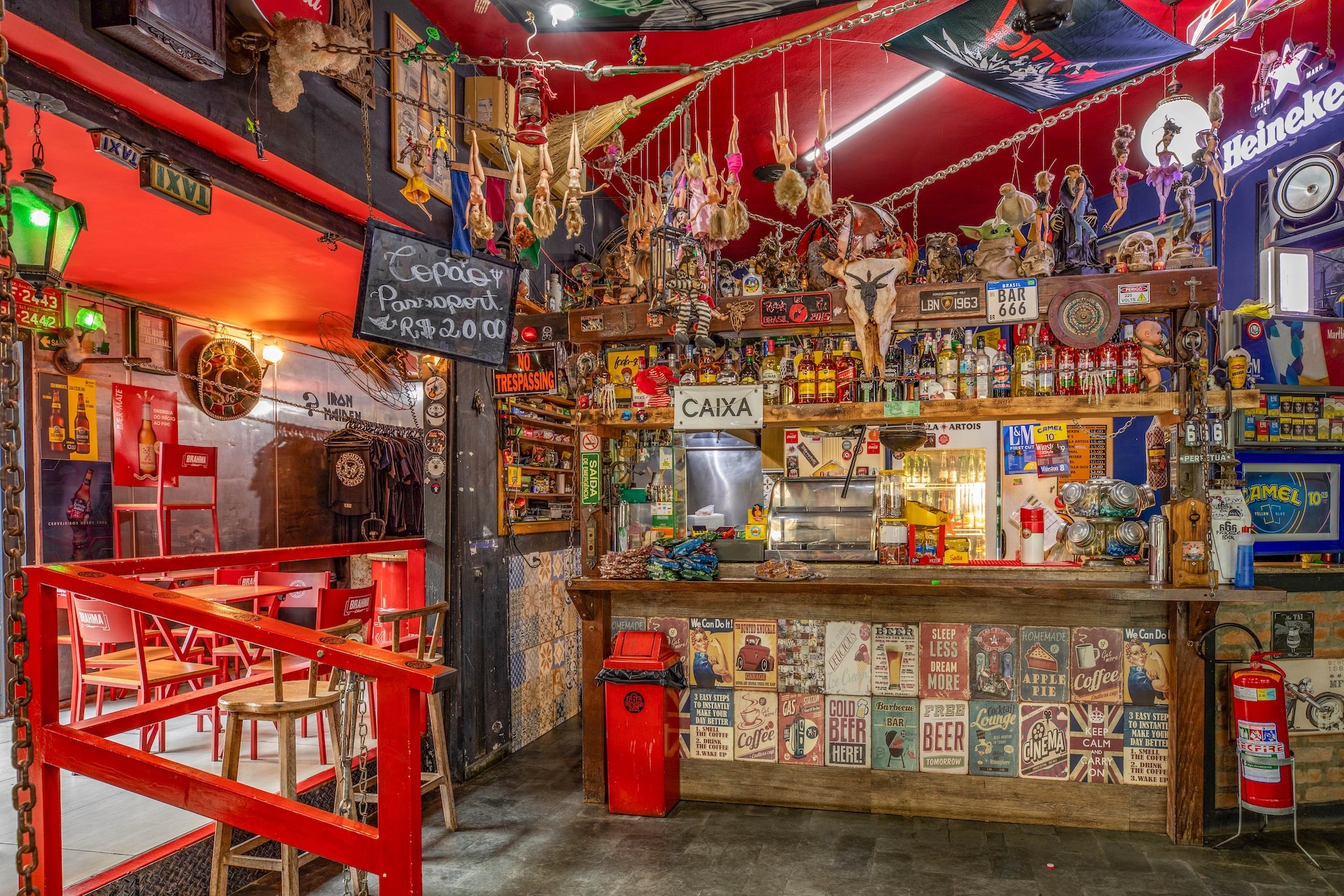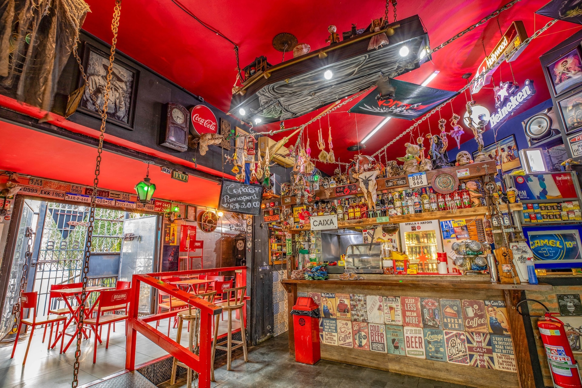 Localizado em uma esquina, o local é marcado pela estética rock and roll, onde um caixão pendurado no teto chama atenção, logo na entrada, enquanto bonecas de cabeça para baixo completam a decoração macabra que percorre todo o espaço. As paredes são pintadas em vermelho, intensificando a atmosfera alternativa.