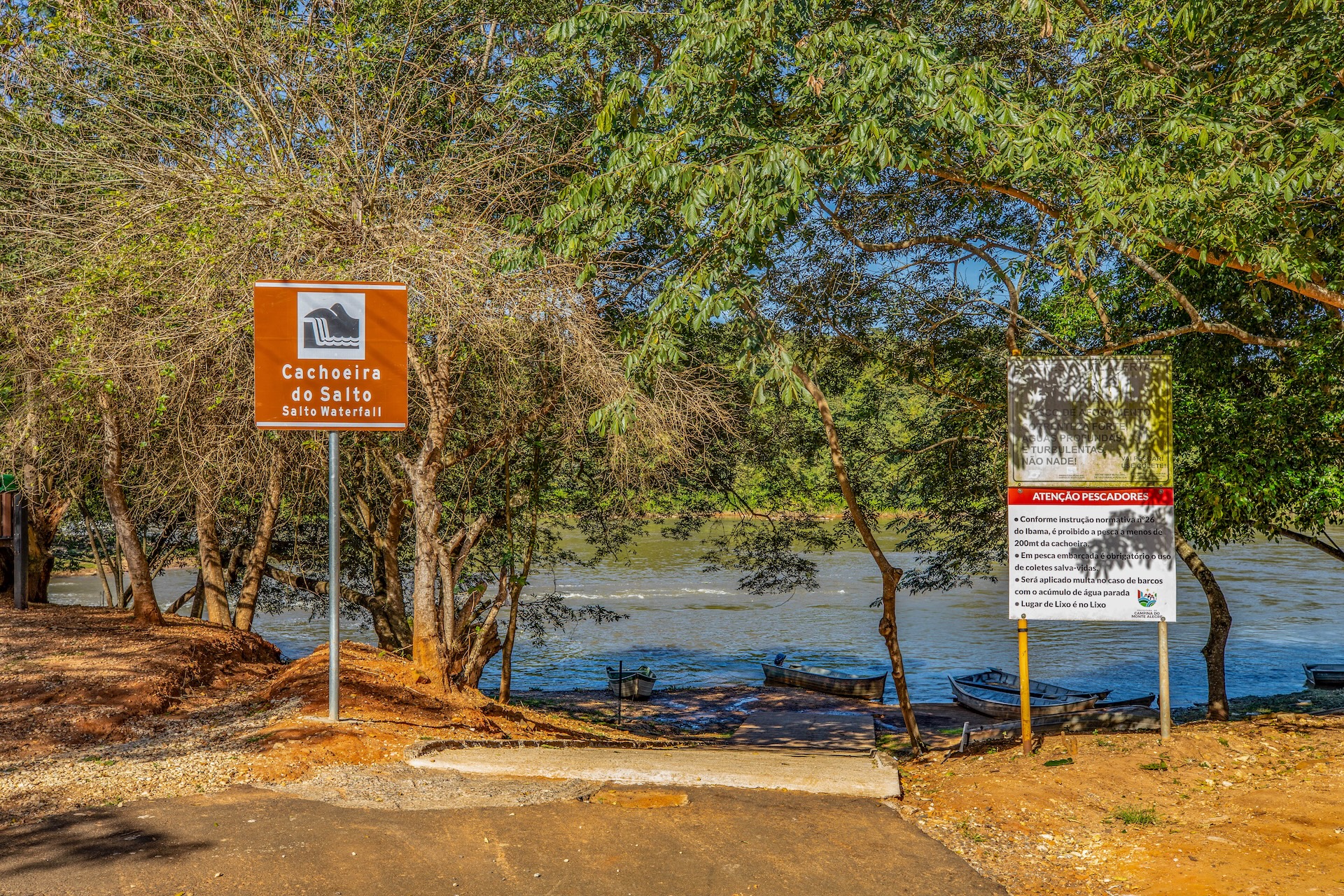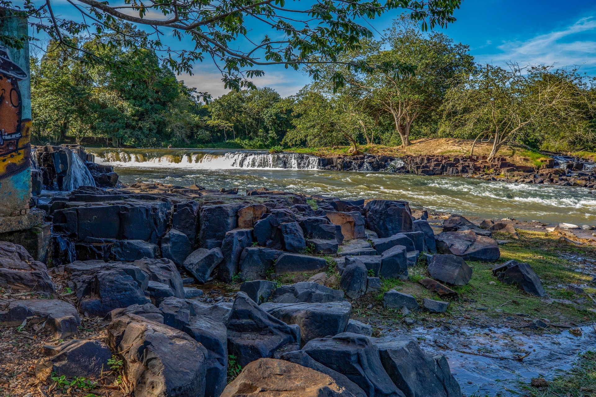 Refúgio natural de beleza marcante, onde as águas correm os paredões de pedra e se encontram com o Rio Paranapanema, cercadas por vegetação nativa e mata ciliar preservada.