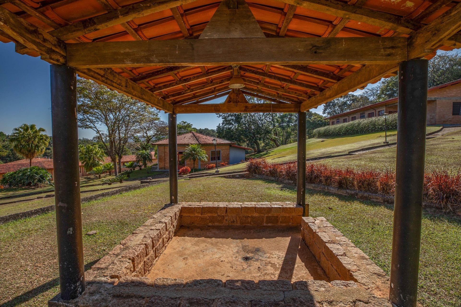 Erguido em meio a mais de 100 mil m² de natureza preservada, o espaço combina arquitetura sóbria com traços inspirados na tradição monástica beneditina, em tons neutros e formas que remetem à simplicidade dos mosteiros europeus. Inaugurado originalmente como casa de retiros nos anos 1980, hoje conta com 48 suítes, restaurante e estrutura para eventos e encontros.