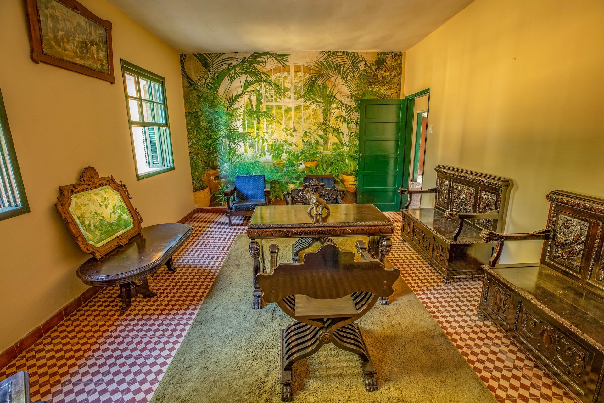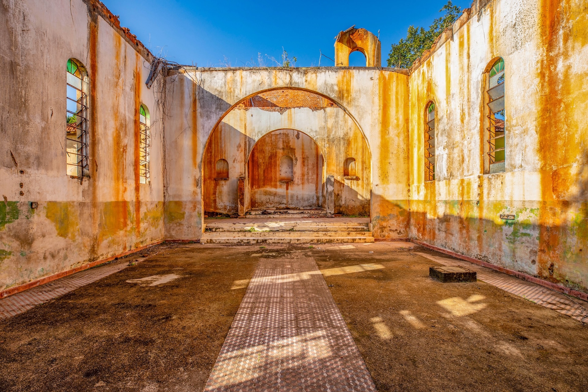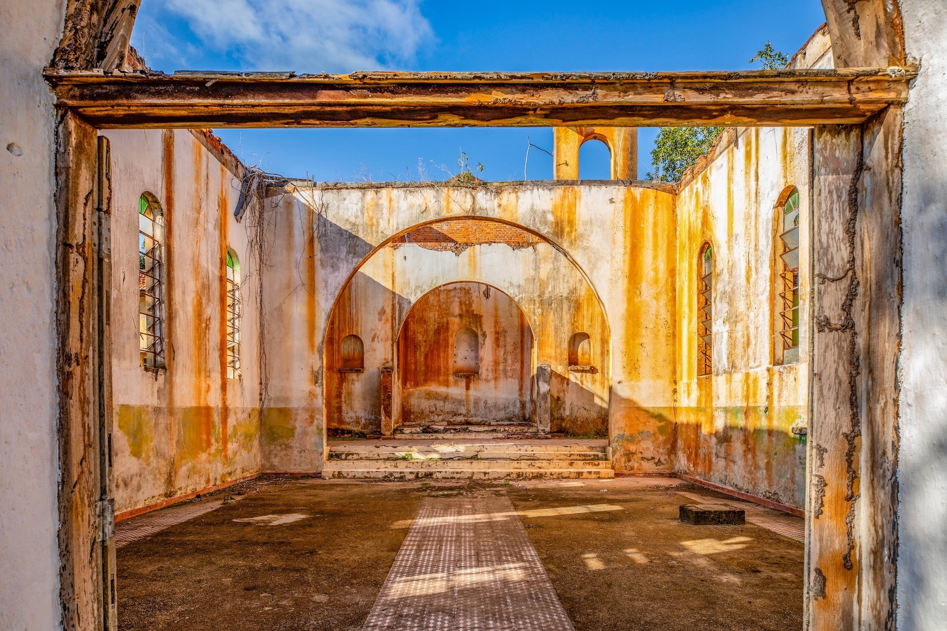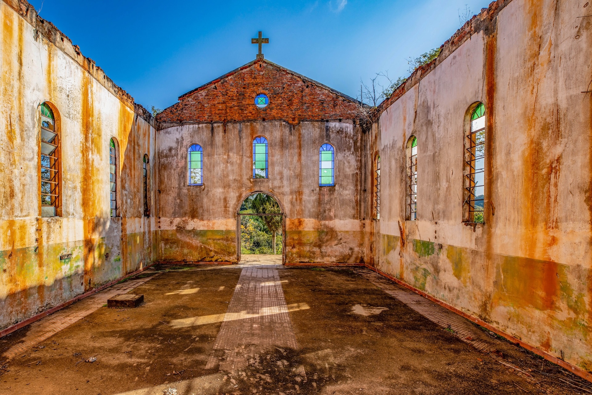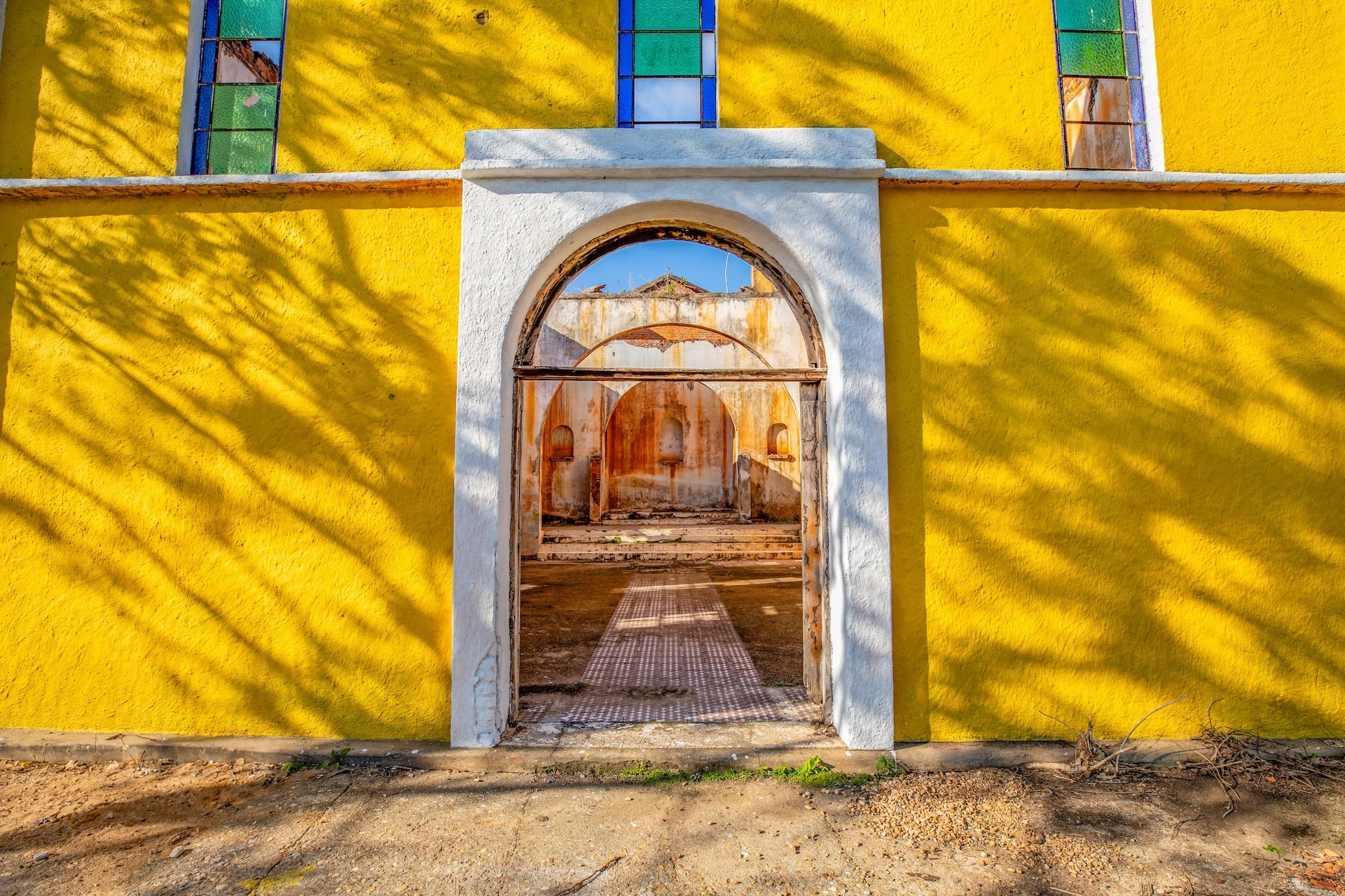 O espaço, remanescente do período colonial, reúne um imponente casarão pintado em tom amarelo com detalhes verdes e varanda que se abre para a paisagem natural. Próximo a ele, sobem as ruínas de uma antiga igreja, com fachada na mesma cor e arcos internos, destacando-se no alto de uma colina cercada por árvores. No terreno da fazenda, o lago acrescenta harmonia ao cenário.
