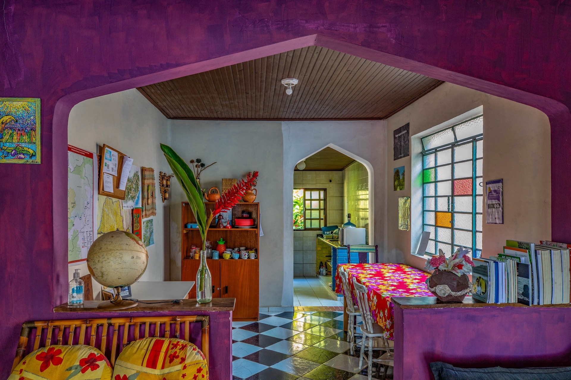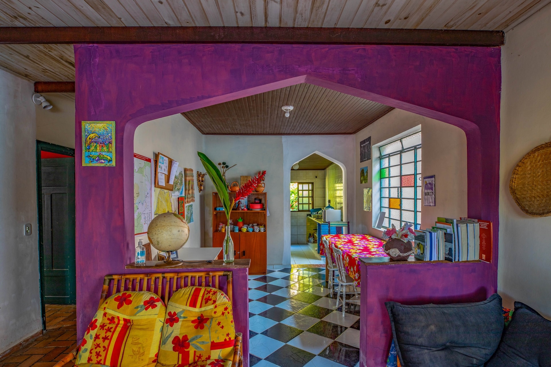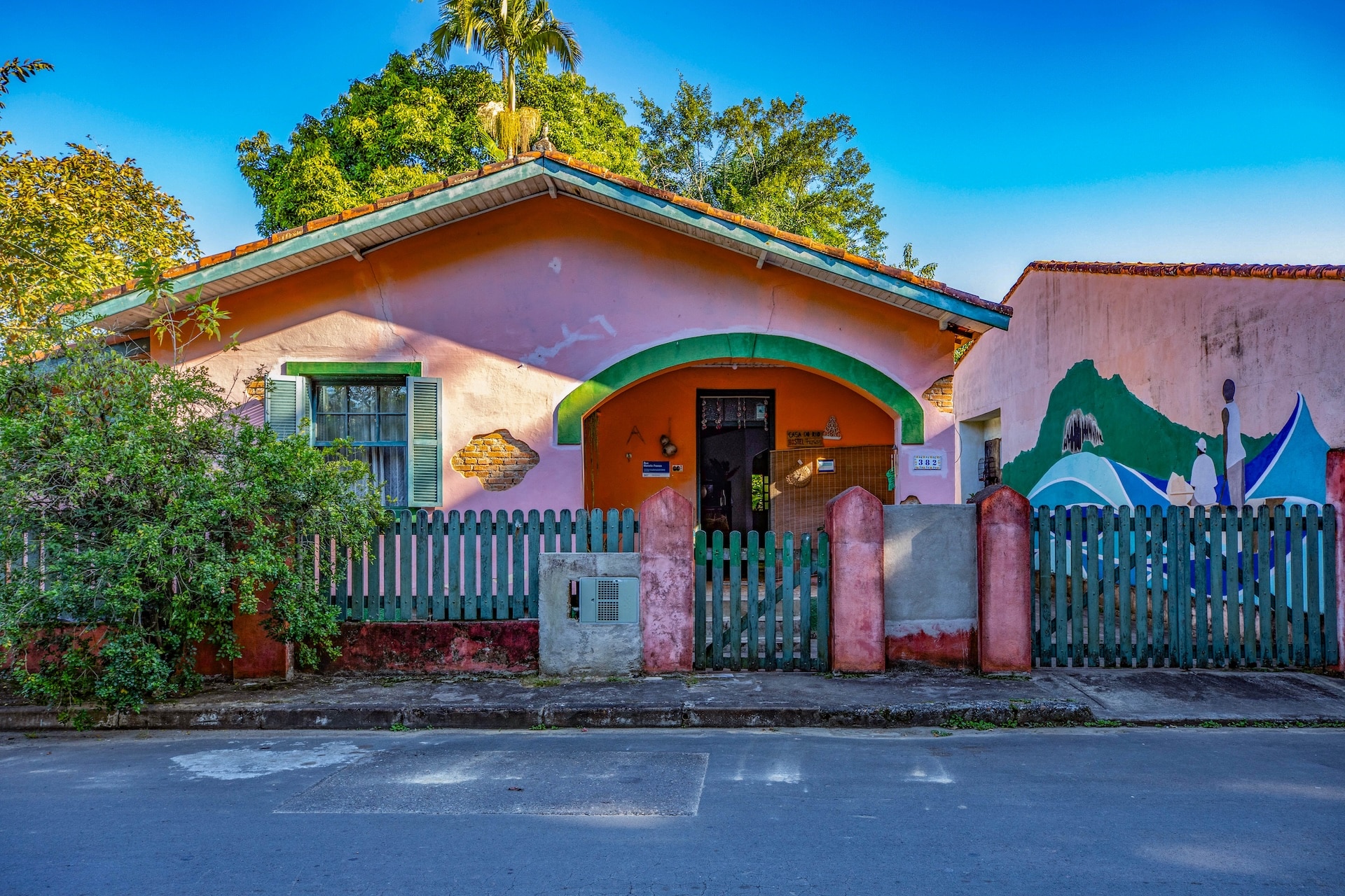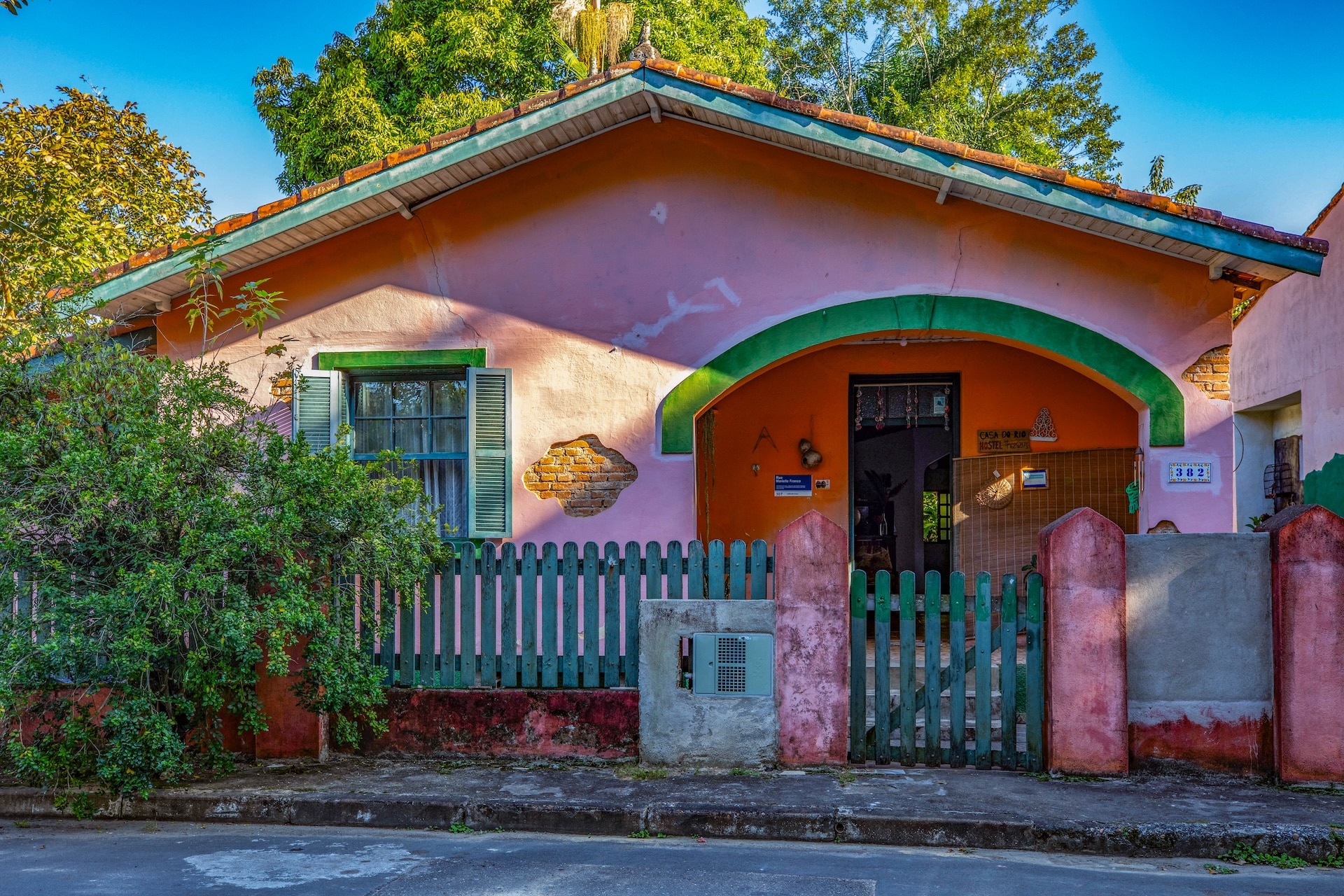 Construção com cerca de cem anos, feita com tijolos de barro parcialmente expostos que evidenciam o método construtivo original. De frente para o Rio Ribeira, está situada em uma rua histórica do município, por onde circulavam barcos a vapor até meados do século 20. A fachada em tom rosado, com detalhes verdes, chama atenção, enquanto o interior mescla elementos da decoração histórica com toques contemporâneos.
