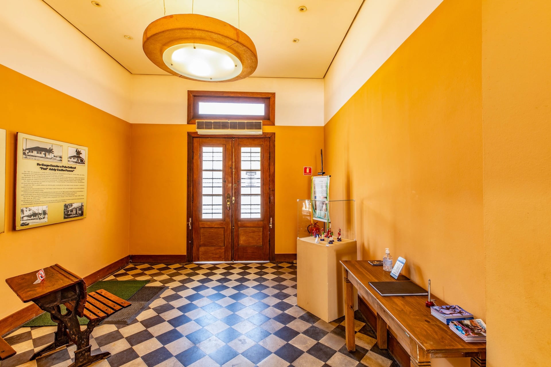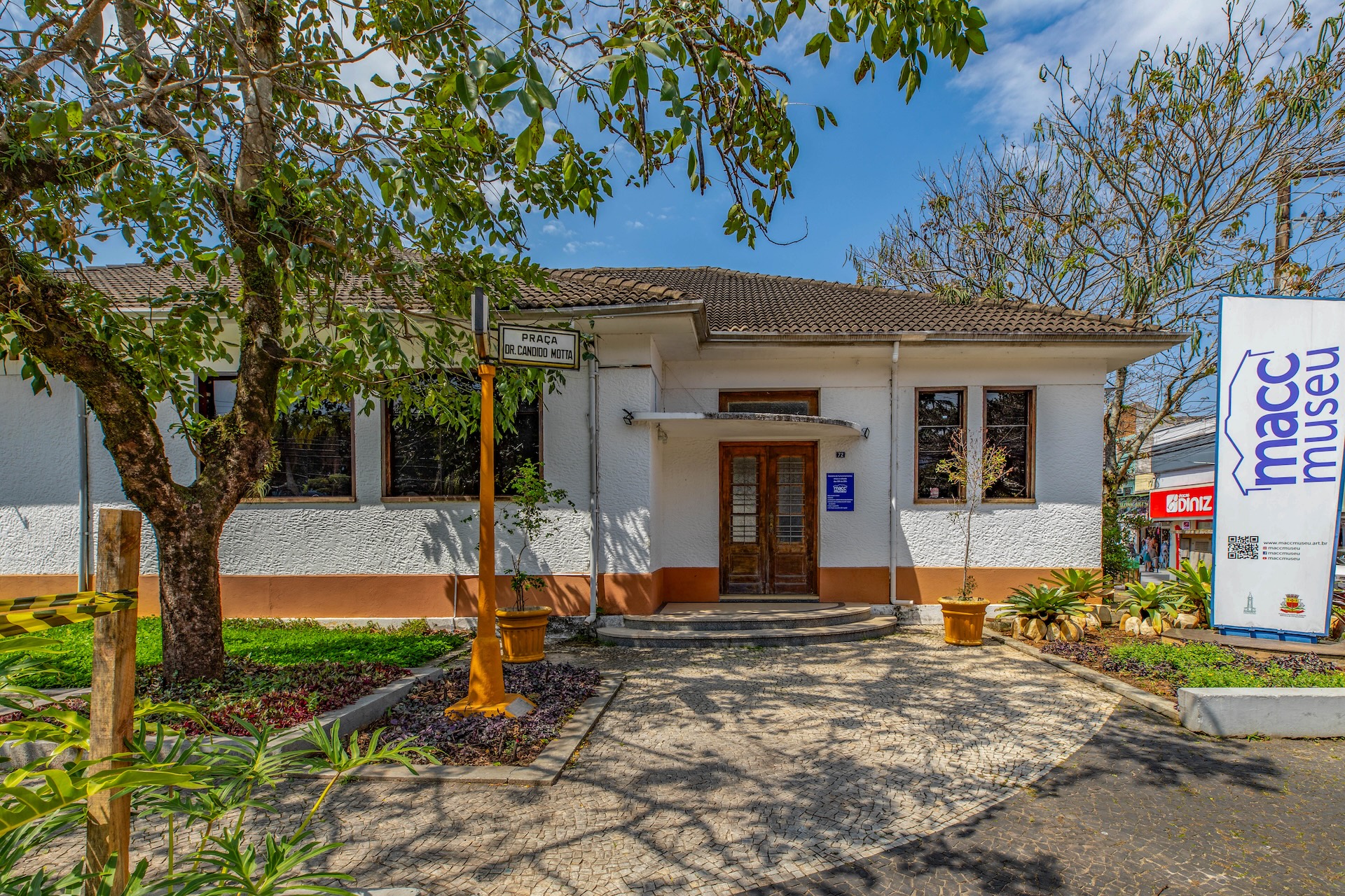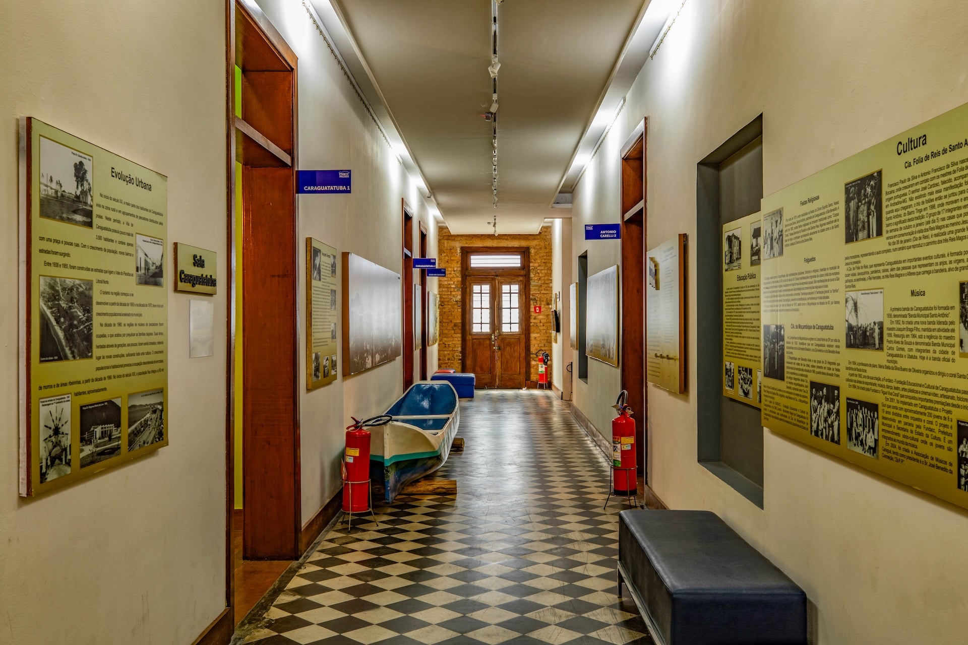 Sediado no antigo edifício do Grupo Escolar de Caraguatatuba, construído em 1941, o prédio apresenta arquitetura marcada pela influência eclética. Na parte interna, azulejos pretos e brancos caracterizam os cômodos.