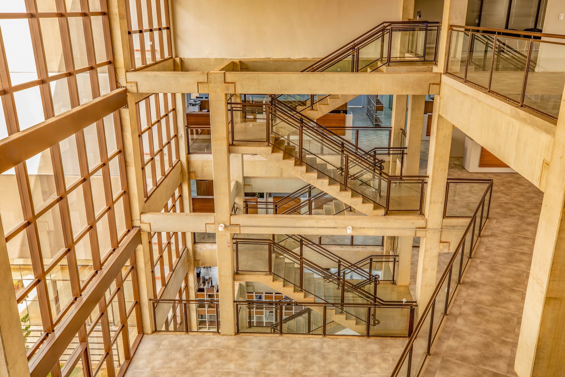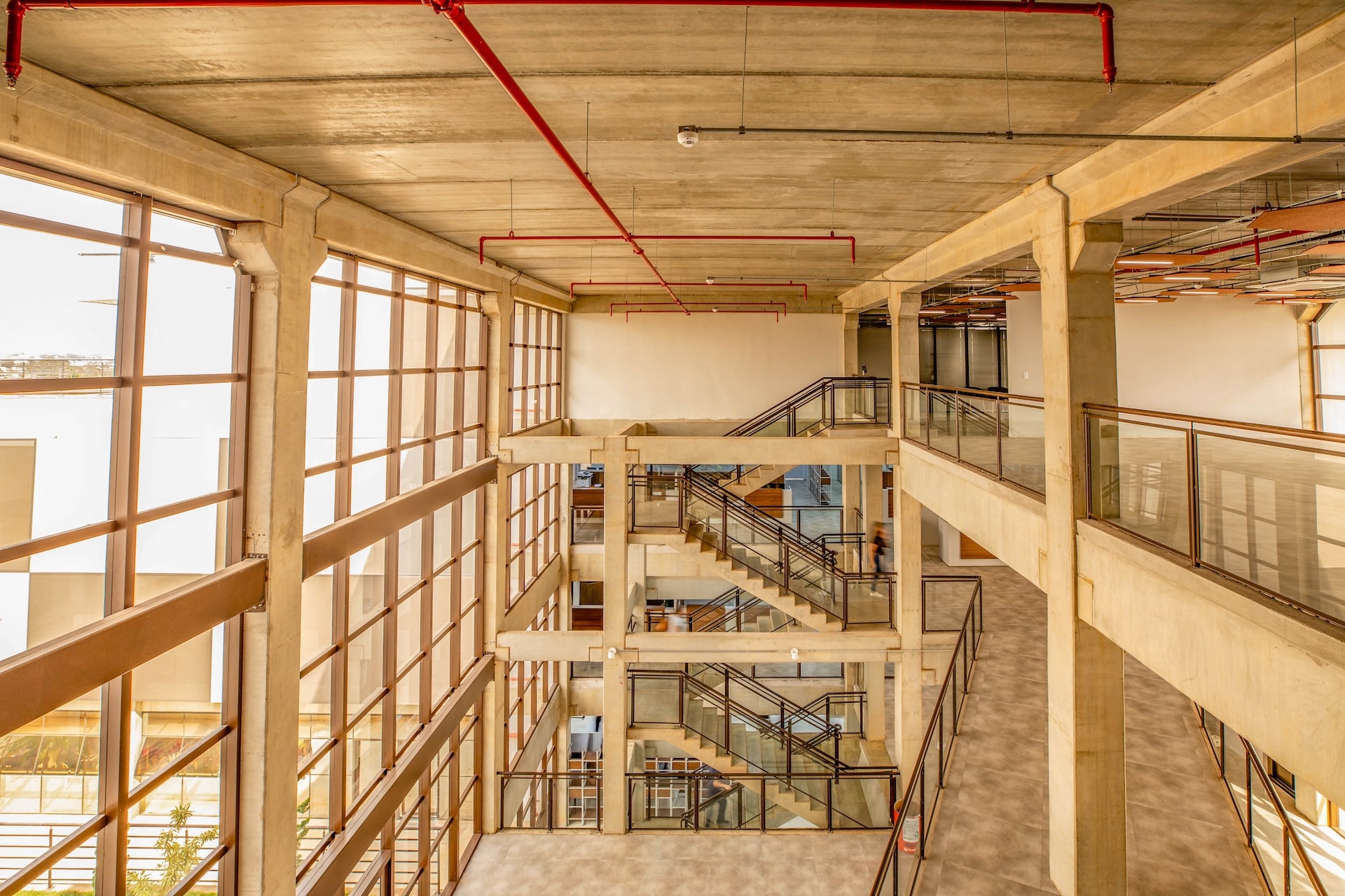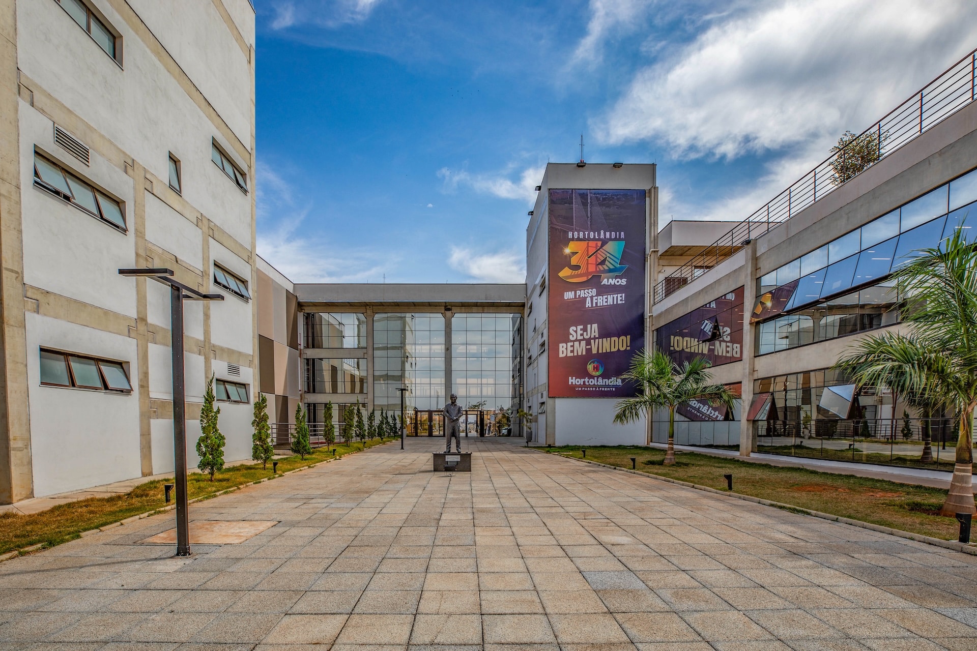 Projetado no formato da letra “H”, em alusão ao nome da cidade, o edifício é composto por quatro blocos conectados que integram áreas internas e externas. Destaca-se pela estrutura moderna em cimento aparente e escadarias expostas, elementos que valorizam a arquitetura contemporânea.