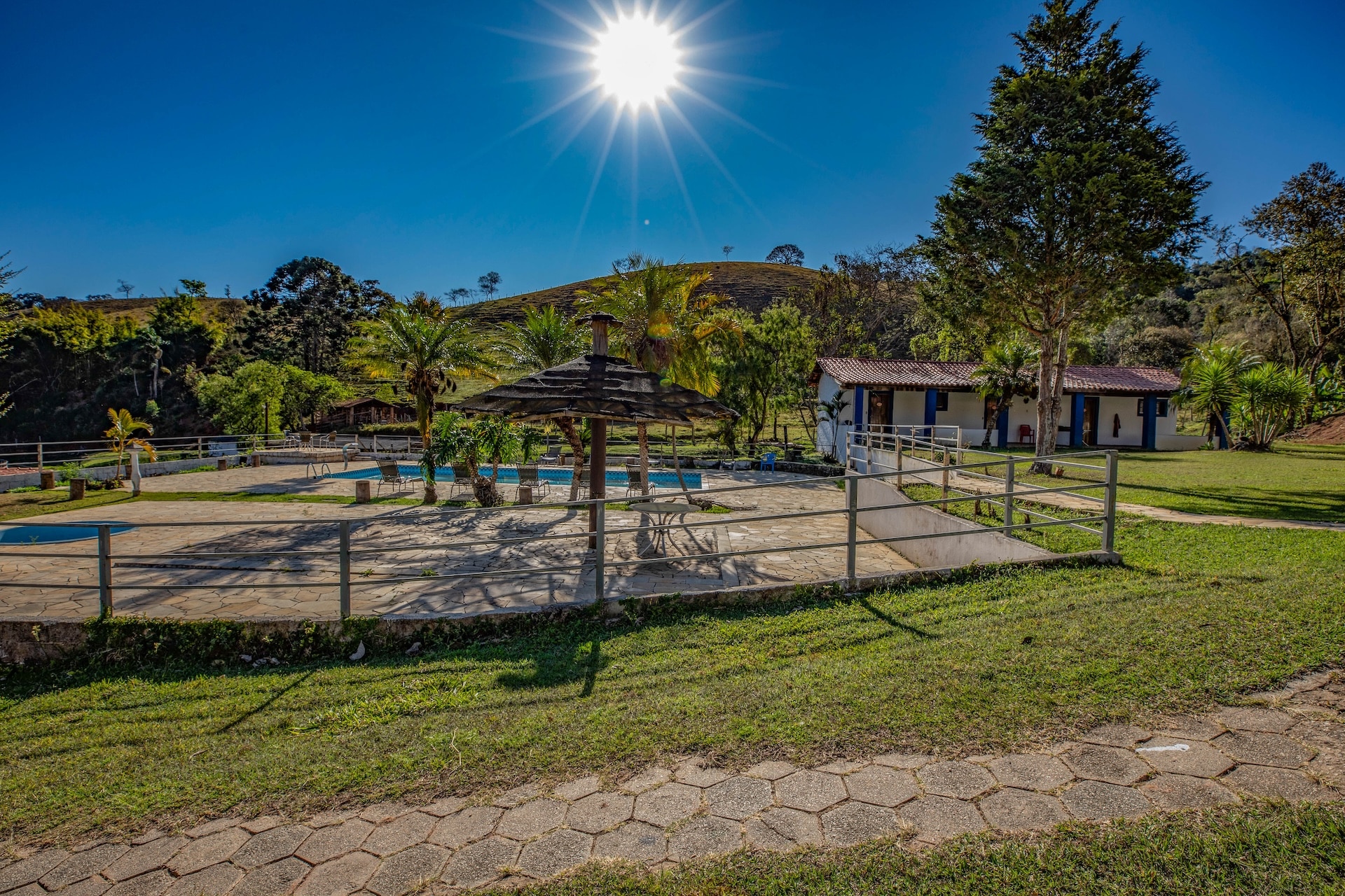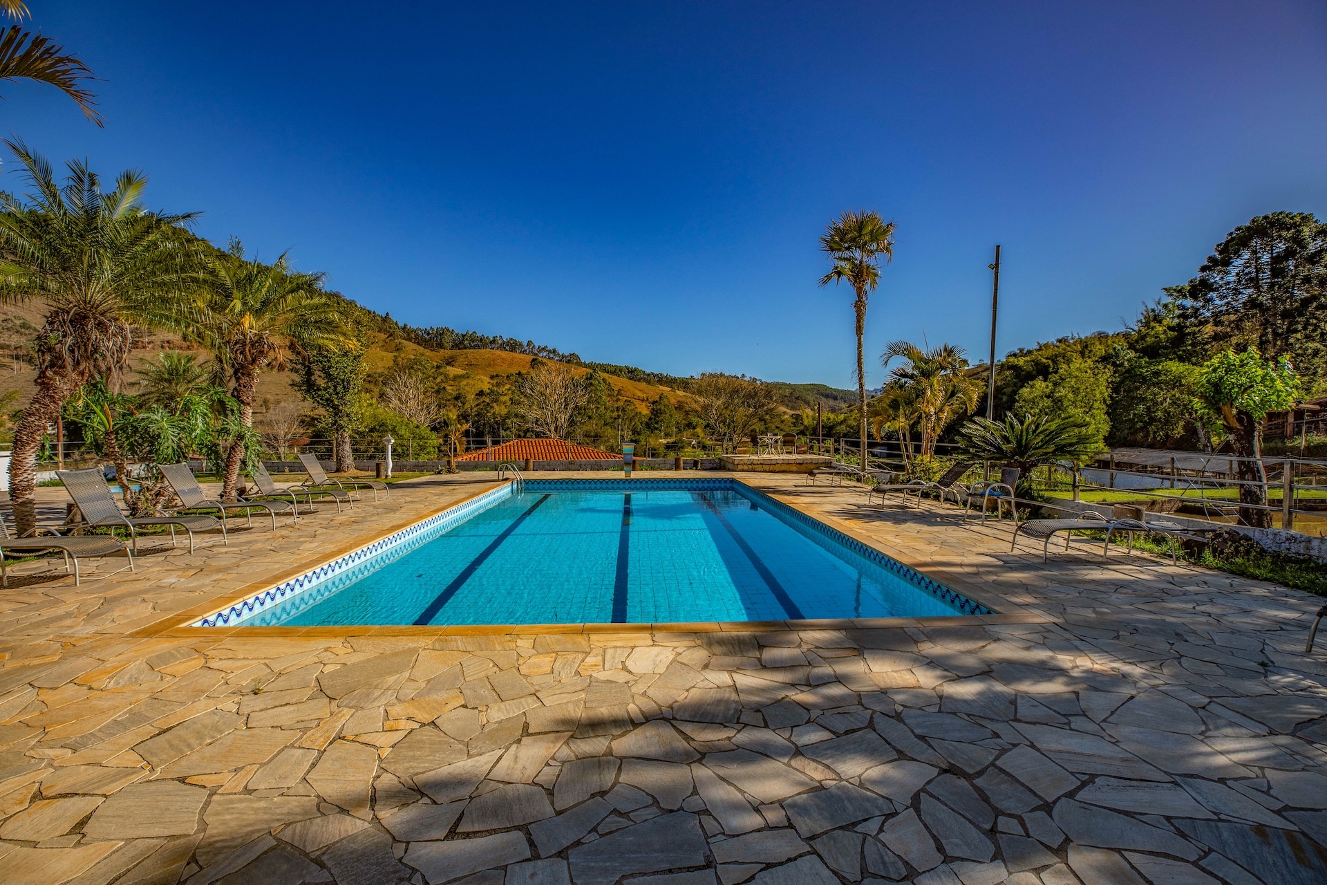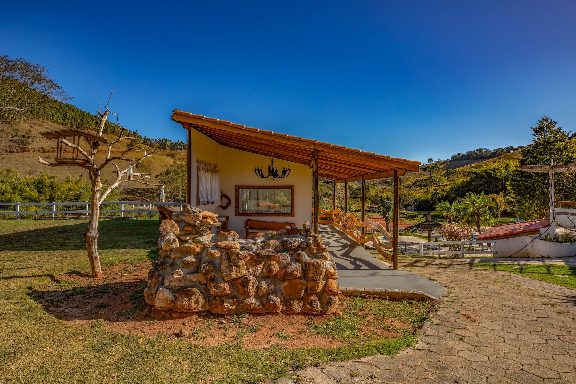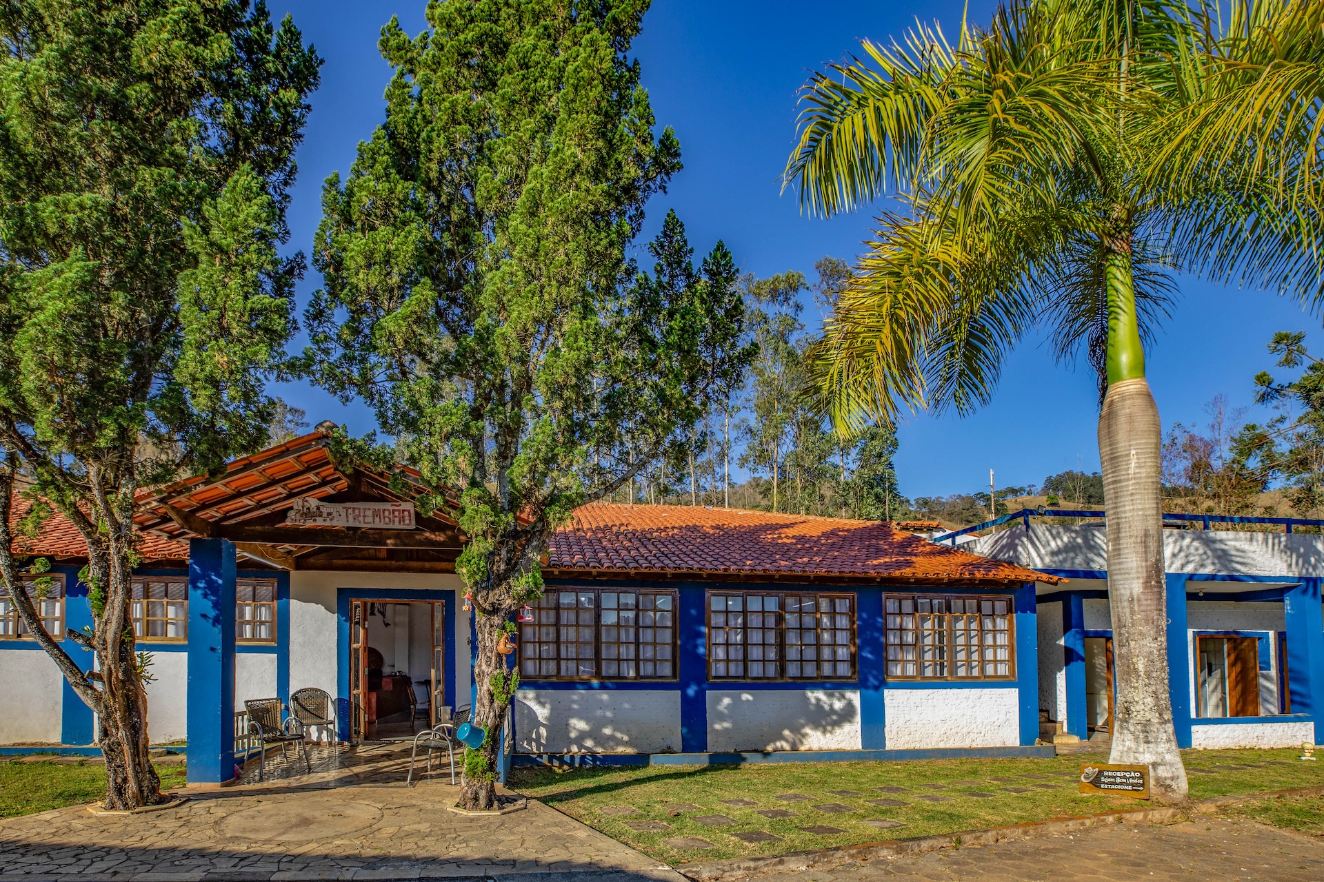 Em meio às montanhas da Serra da Mantiqueira, o espaço oferece piscina, sauna, academia, salão de jogos, restaurante, bar e área infantil. A pousada conta com chalés de madeira que possuem sacadas com vista para a imponente capela no terreno, cuja torre central, nas cores branco e azul, contrasta com a vegetação ao redor.