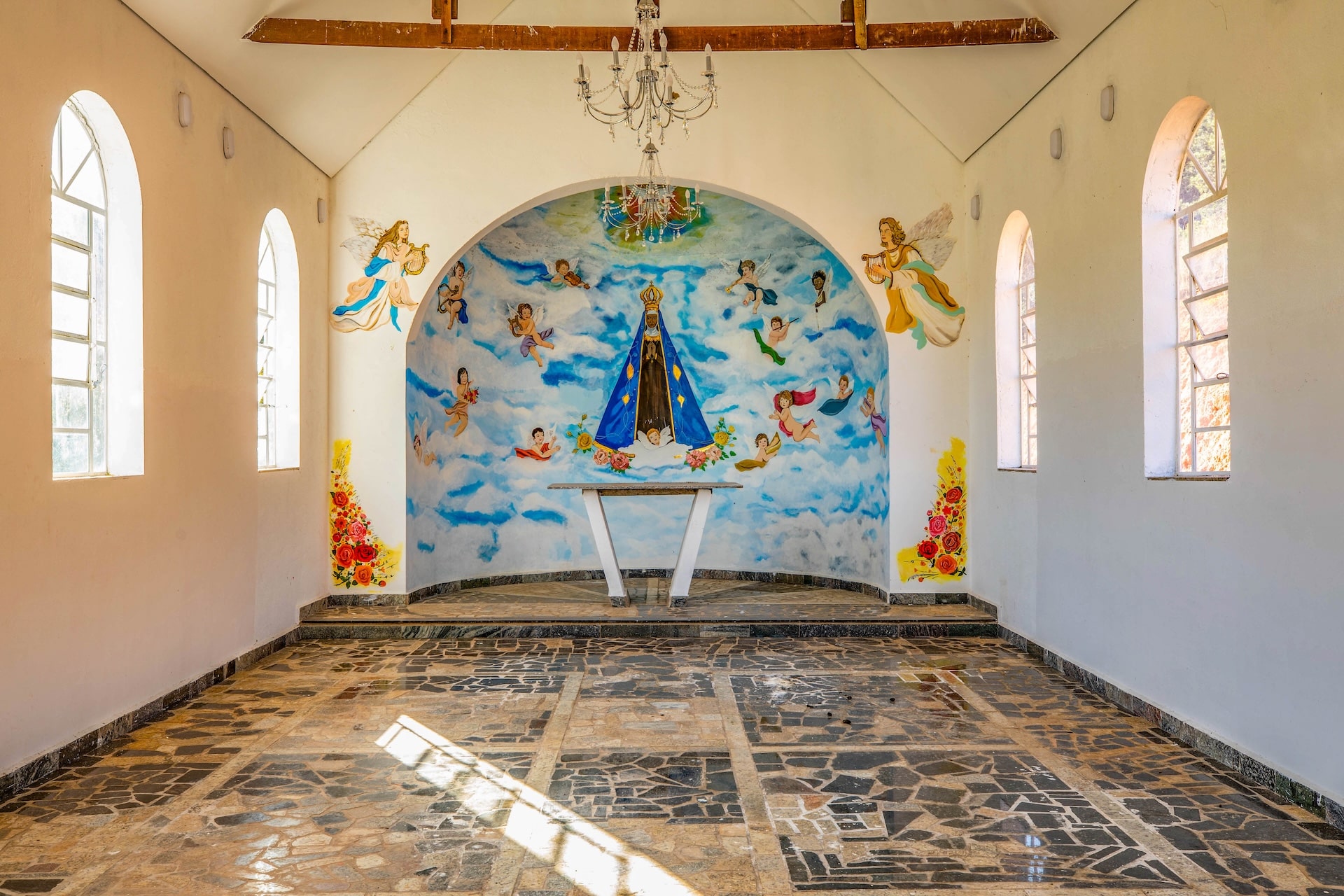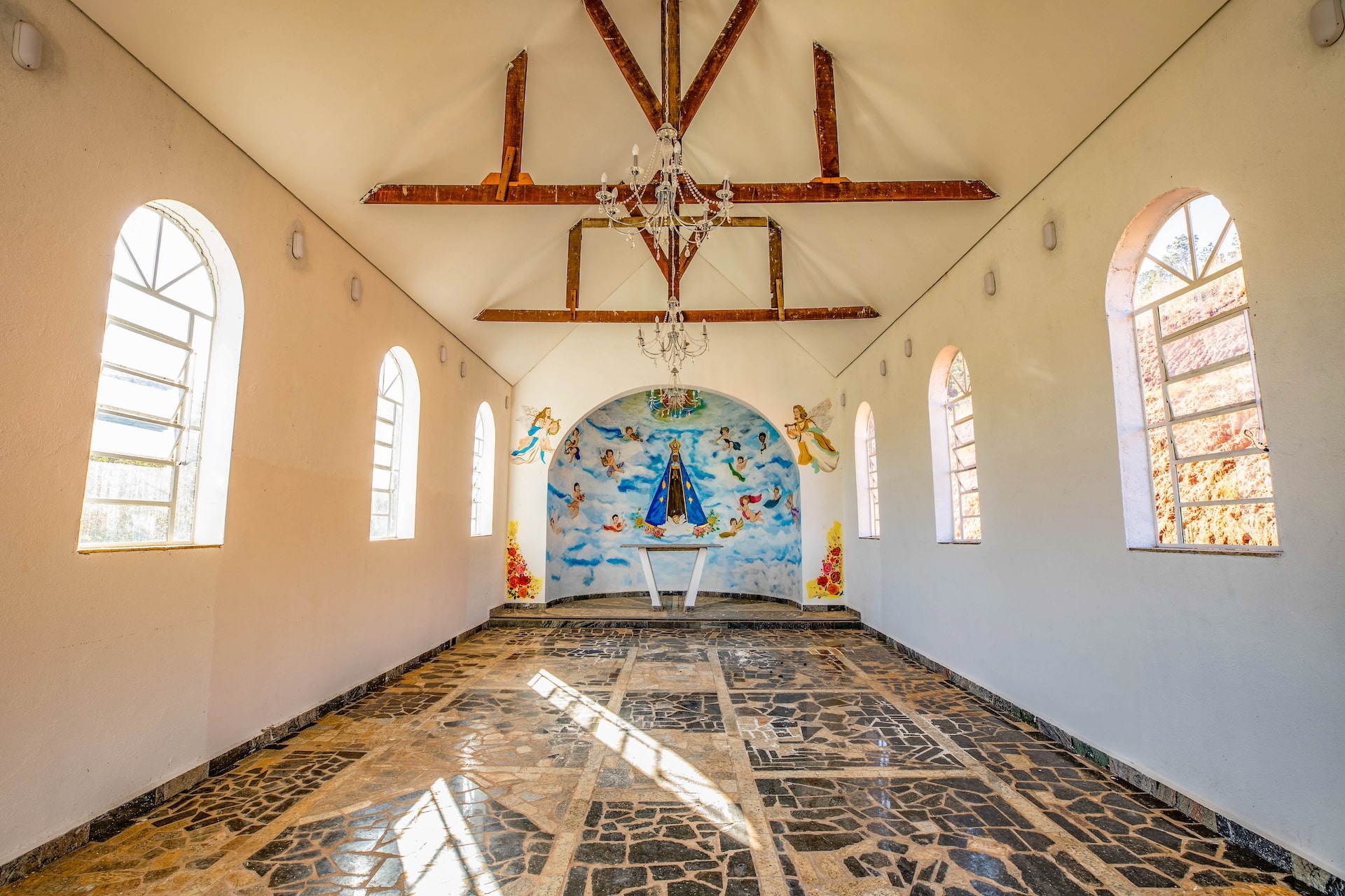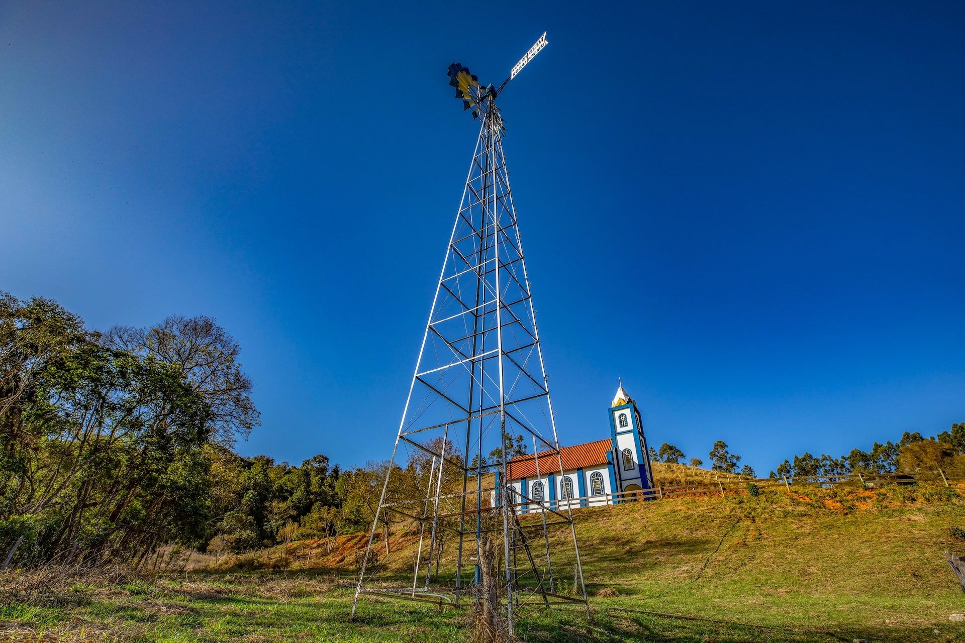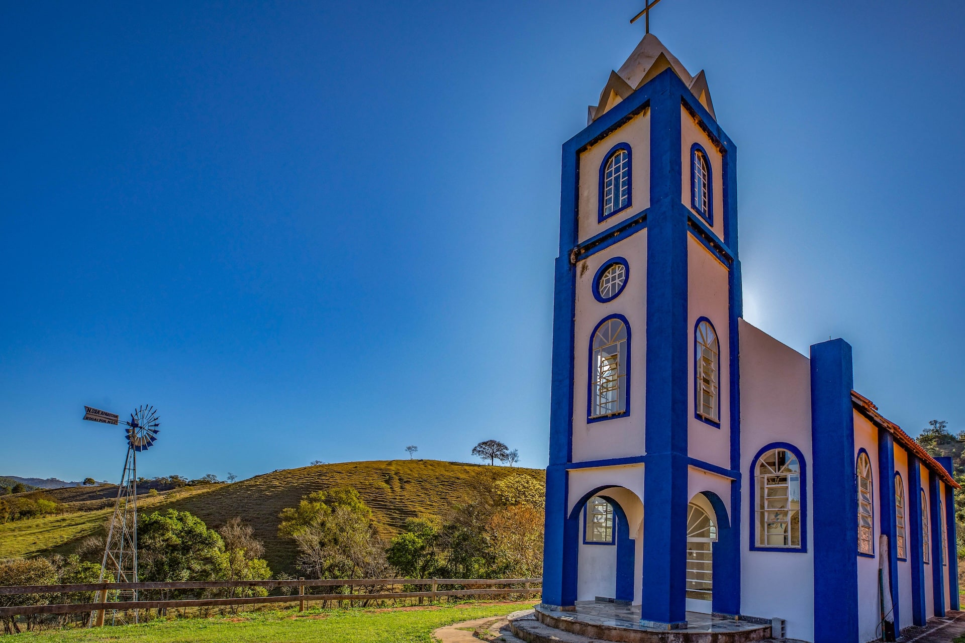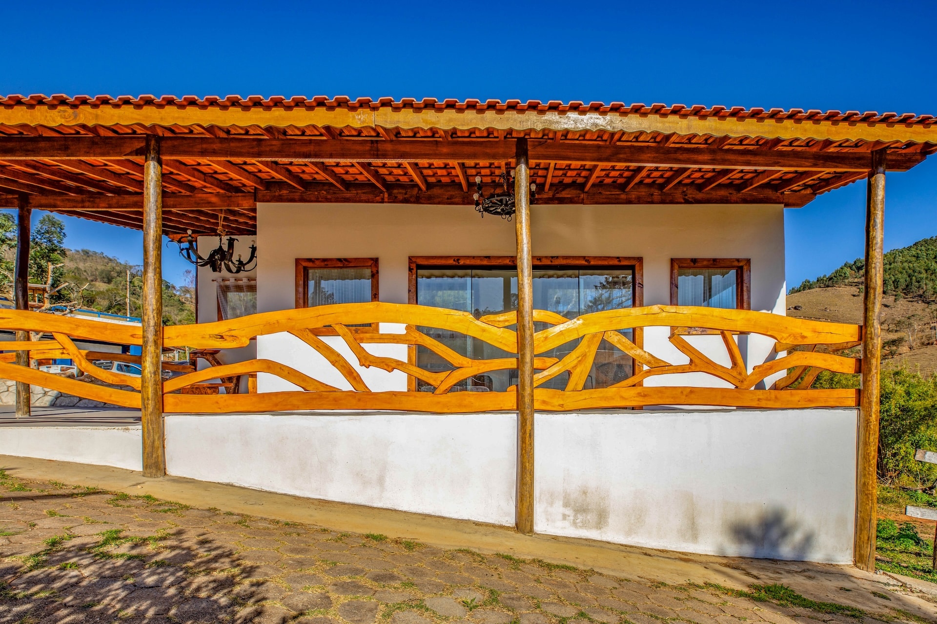 Em meio às montanhas da Serra da Mantiqueira, o espaço oferece piscina, sauna, academia, salão de jogos, restaurante, bar e área infantil. A pousada conta com chalés de madeira que possuem sacadas com vista para a imponente capela no terreno, cuja torre central, nas cores branco e azul, contrasta com a vegetação ao redor.