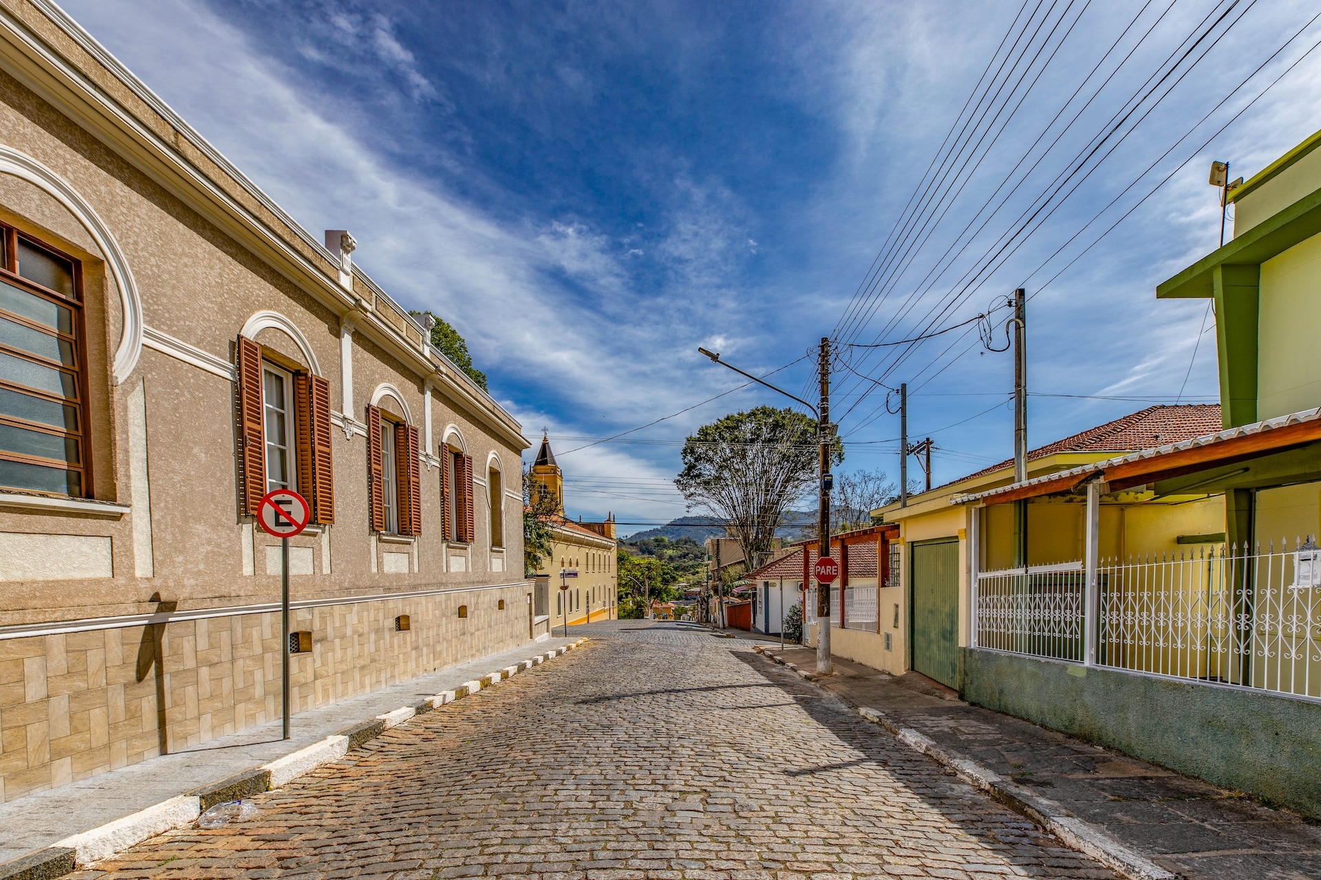 Ruas de paralelepípedo que apresentam construções preservadas.