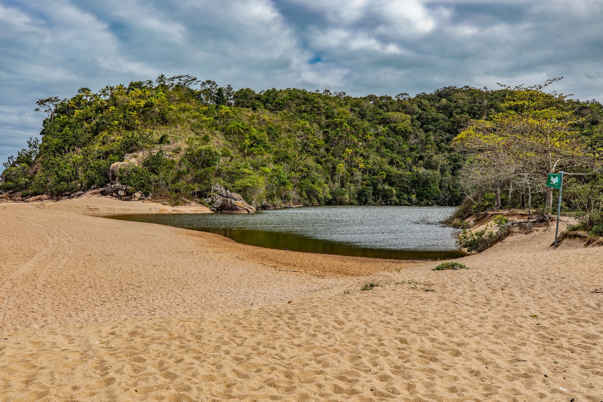 Em área de reserva, de frente para o mar, encontra-se a Lagoa Azul, formada por água doce e separada do oceano por bancos de areia.