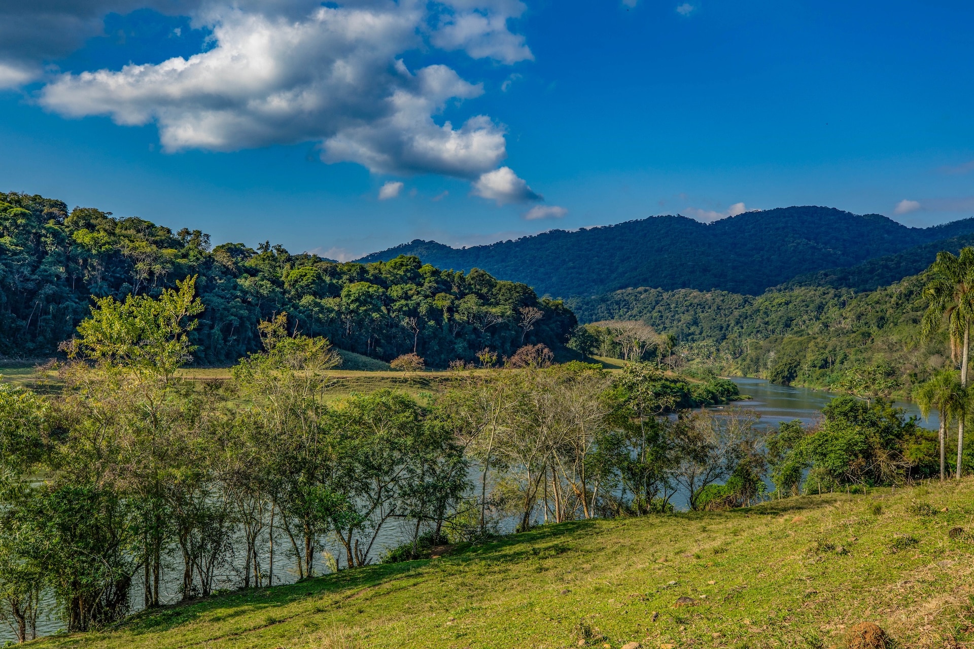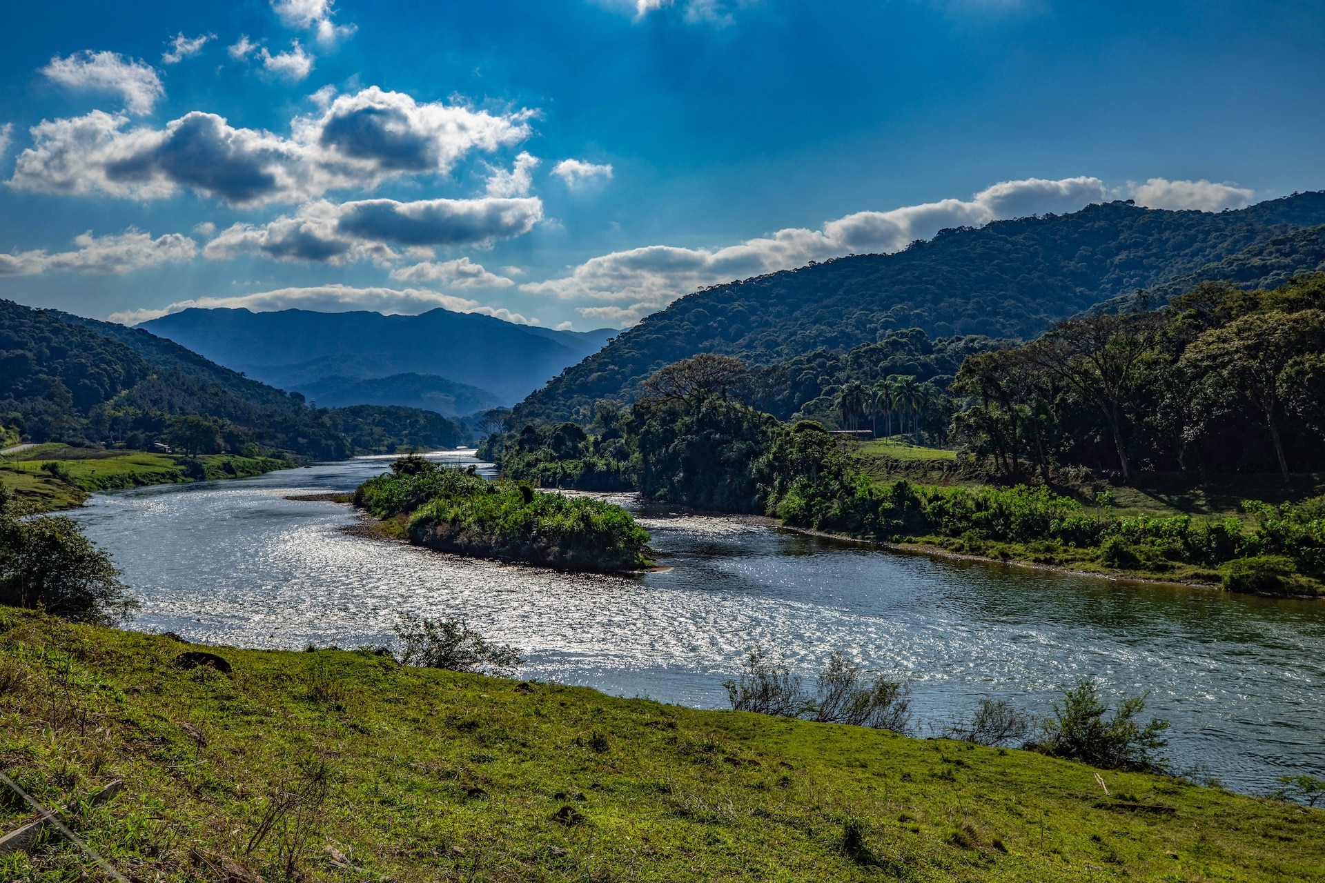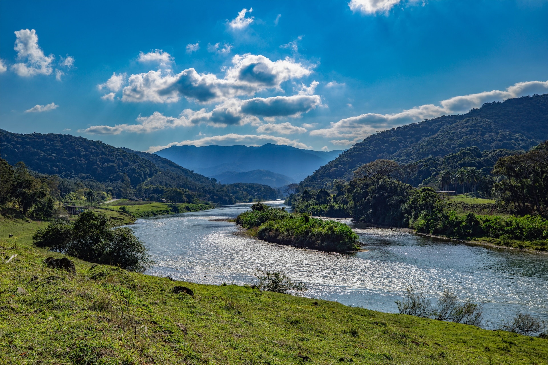 Vista panorâmica do Rio Abobral, que corta as montanhas ao longo de seu curso.